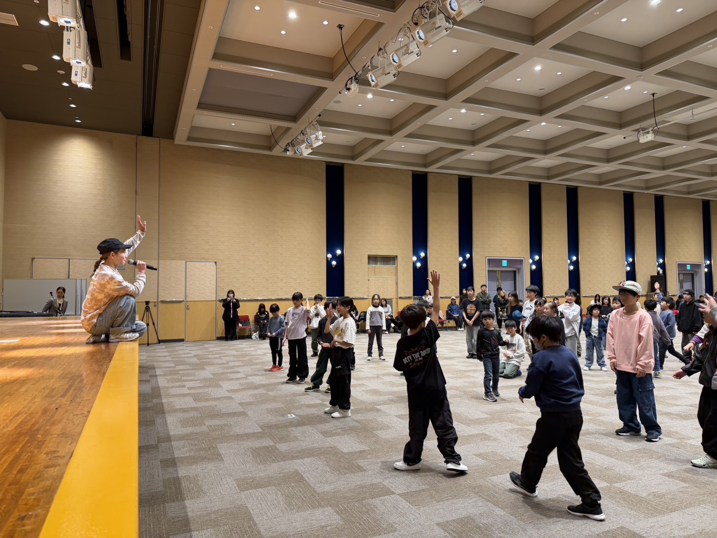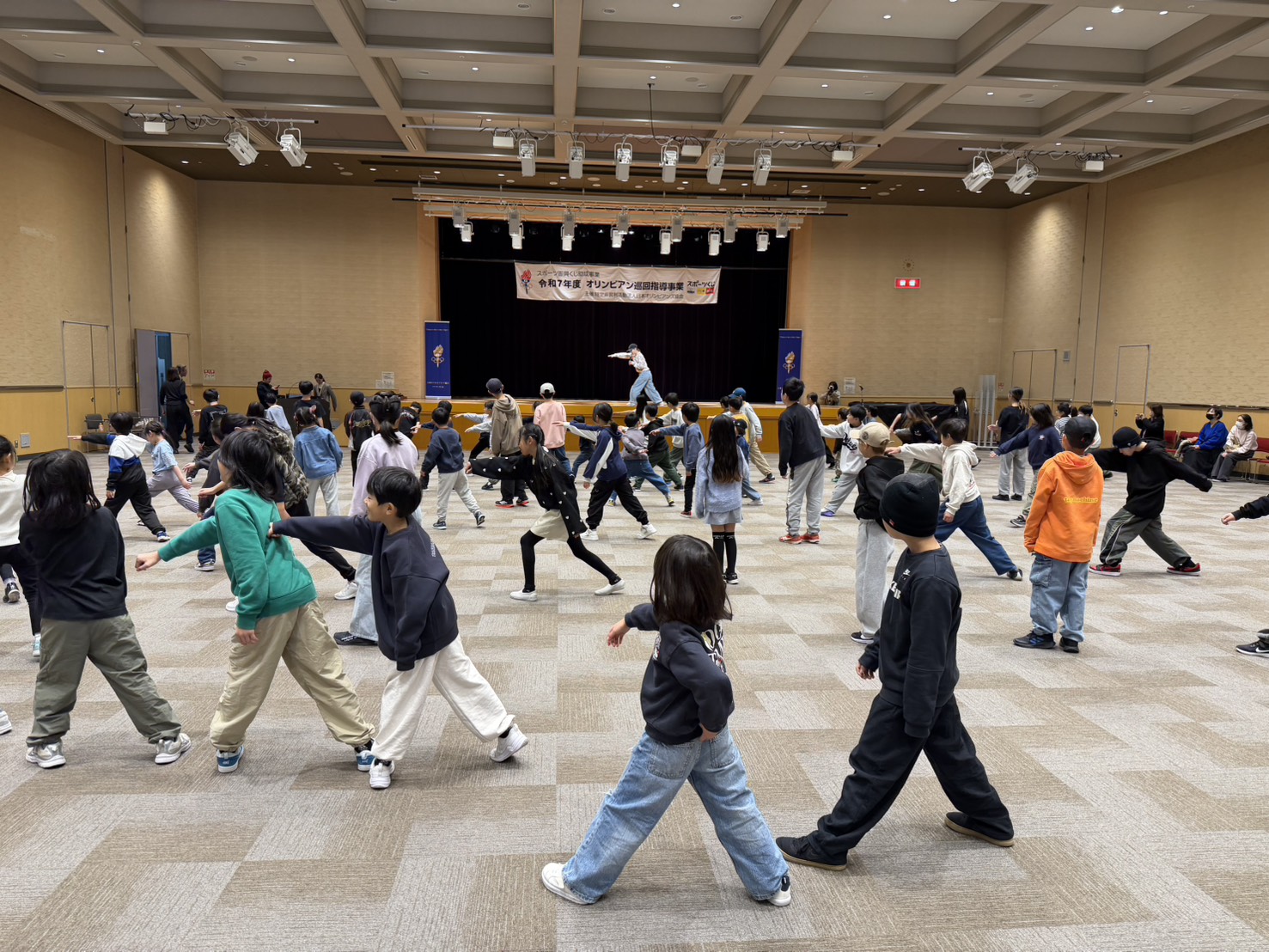 当日は、初心者からダンス経験者まで約70名の子どもたちが参加し、音楽に合わせて簡単なステップからフリーズまで1時間たっぷりとブレイクダンスを楽しみました。